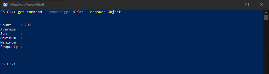 PS:C:\>Get-Command –CommandType alias | measure-object